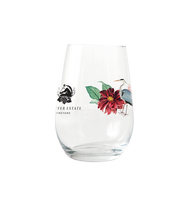 Enjoy our 15oz stemless wine glasses with a full, one-of-a-kind Summer in a Bottle floral wrap and Wölffer logo!